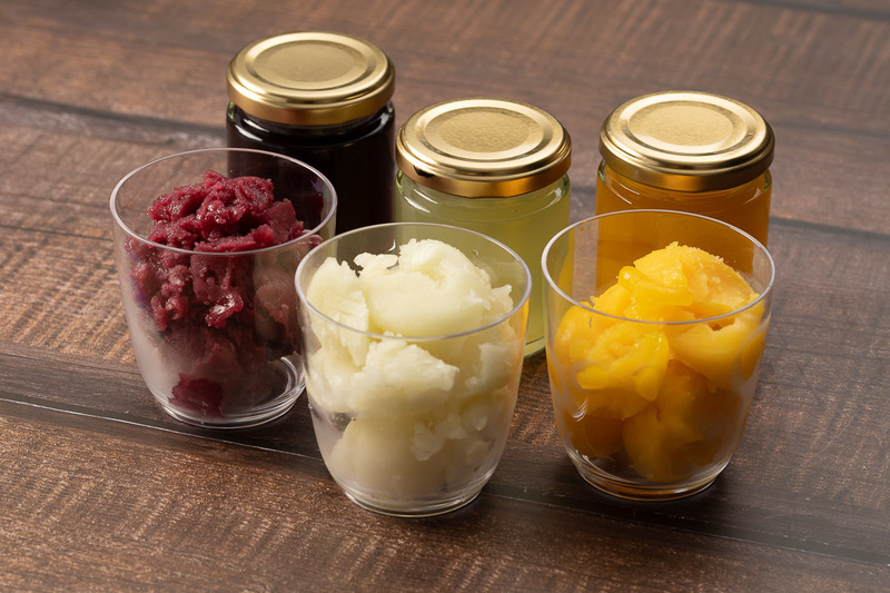 OEM ドームゼリー(マンゴー) 果肉入り インド産アルフォンソマンゴーピューレとマンゴー濃縮果汁、ペルー産マンゴーのシラップ漬を使用し仕上げました。 ※こちらの製品にはペルー産マンゴーの果肉が入っております。